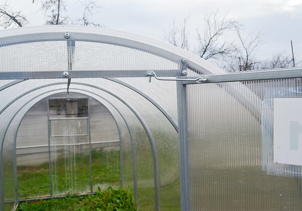Теплица комплектуется качественным и долговечным сотовым поликарбонатом. Полная совместимость с системами капельного полива и автопроветривания.