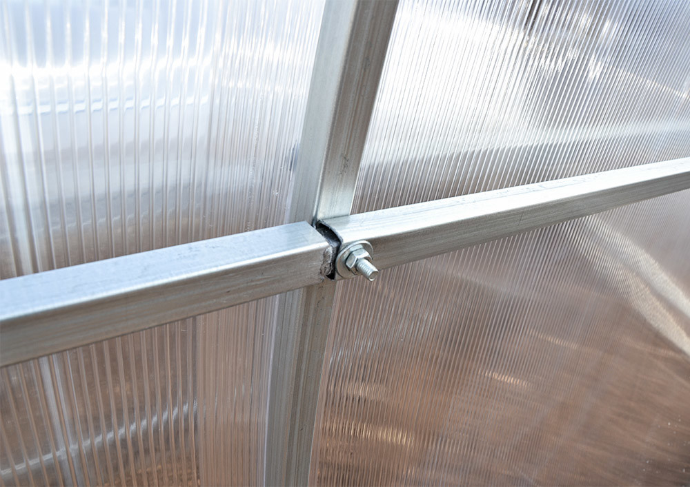 Цинковое покрытие надёжно защищает каркас теплицы от коррозии. Стальная труба оцинкована полностью с наружной и с внутренней стороны.