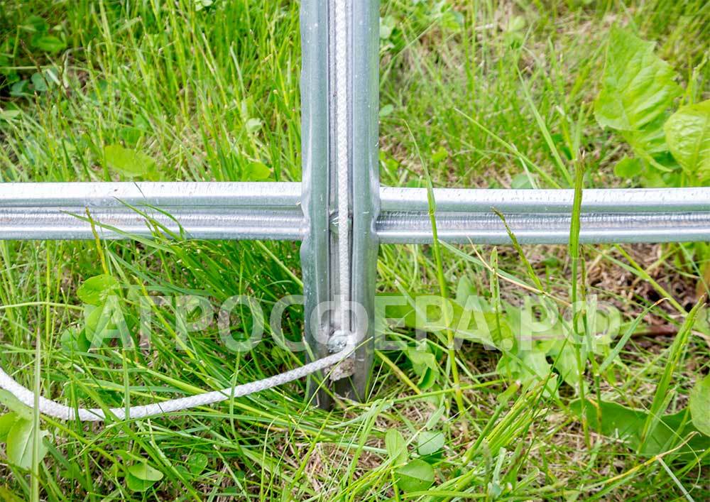 5) цельносварные торцы (соответствует 60 см свежевыпавшего снега)Защита каркаса от ржавчины: труба оцинкована и по наружной, и по внутренней поверхности; толщина слоя оцинковки — 140–180 мкм (очень высокая степень защиты); все сварные швы защищены специальной антикоррозийной краской