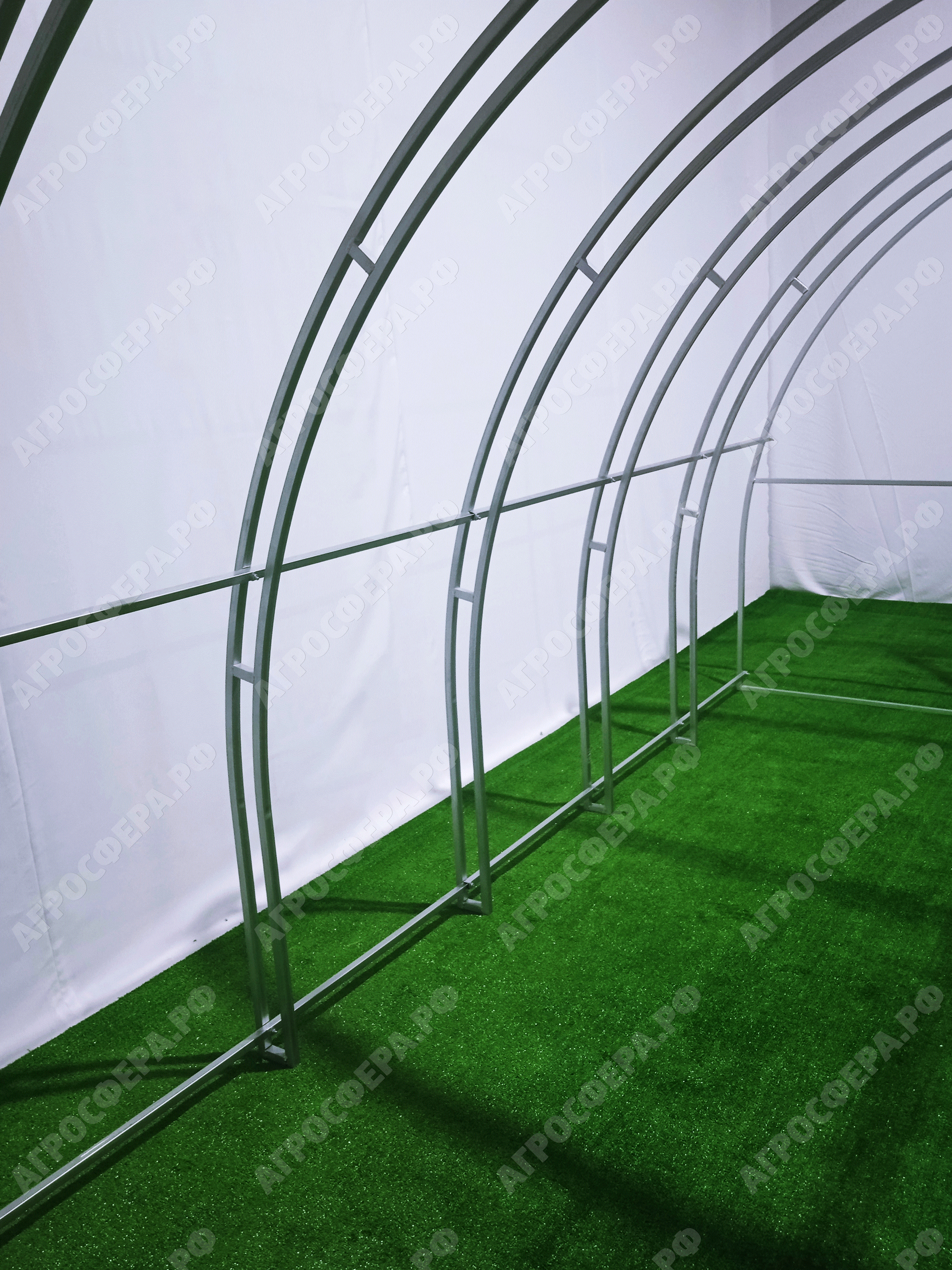 Усиленную теплицу Агросфера-Плюс выбирают те, кто ищет повышенную надёжность. Практичная и эстетичная Агросфера-Плюс имеет больше дуг, чем базовая модель Агросфера-Стандарт. Преимущества такой конструкции — особая прочность каркаса и более равномерное распределение снеговой нагрузки на сотовый поликарбонат.